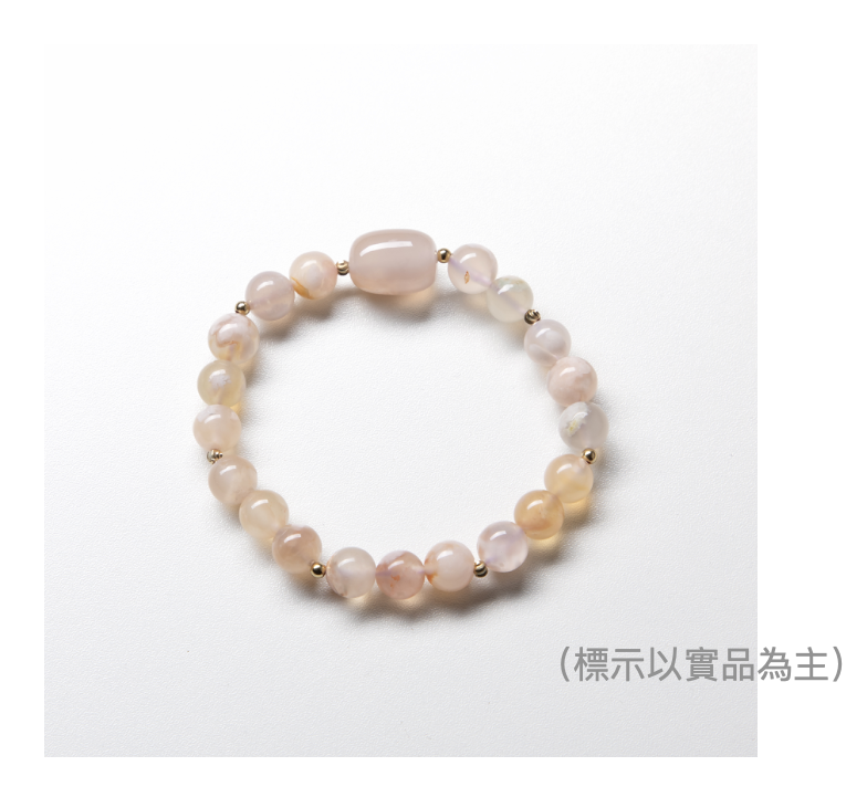 每一 顆 櫻 花 瑪 瑙 , 都 擁 有 獨一 無二 的 天 然 紋 理 與色 彩 , 彷 彿 盛 開 在 掌心 的小小 花 園 。 挑 選 、 搭 配 的 過 程 , 不 僅 是 創 作 的 樂 趣 , 更 是 將自 然 之 美 化 為 專 屬 於 你 的手 鏈 。
